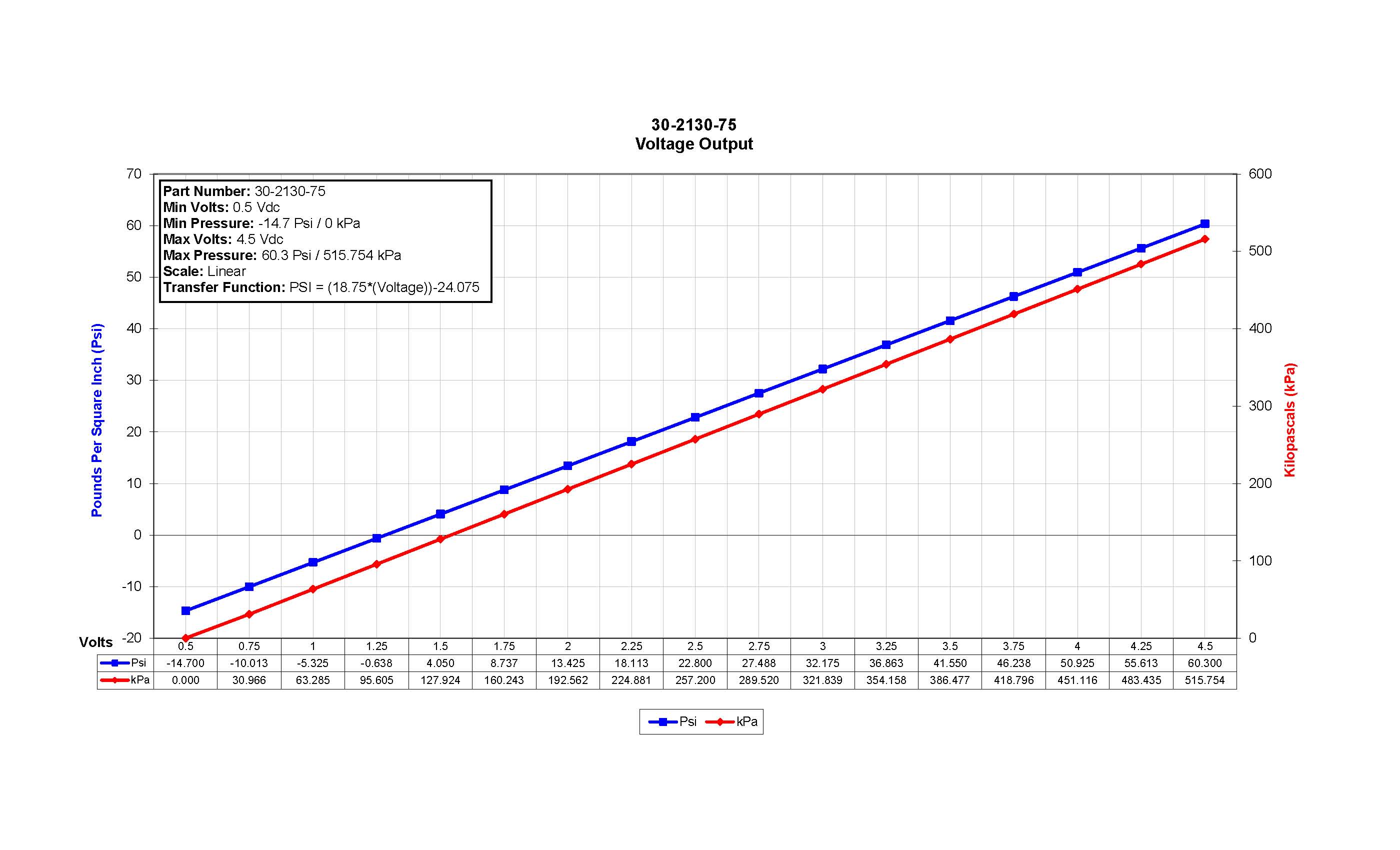• Accuracy: +/- 0.5% Full Scale over -40C to 105C includes Repeatability, Hysteresis and Linearity
