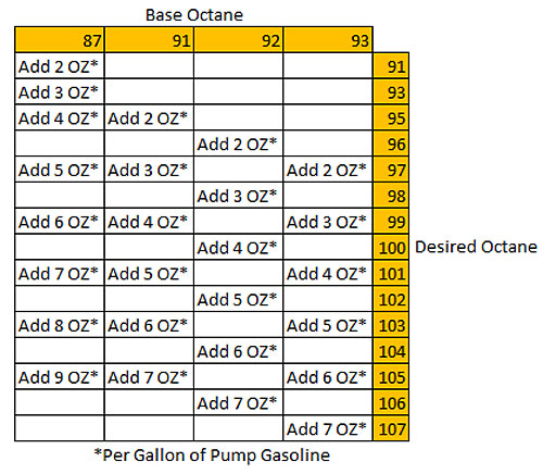 In working with several chemists and our suppliers we came up with the blend that became RACE GASTM. When we had a third party laboratory run the ASTM D 2699 and 2700 tests, Race Gas blended with pump gas produced results as good as racing with regularly distilled 100 octane gasoline, See the test results. This blend will improve the quality of regular “pump gas” and make it suitable for racing – why? Because RACE GASTM adds back in the key elements of racing fuel – hydrocarbons, oxygenates, and organometallic compounds: